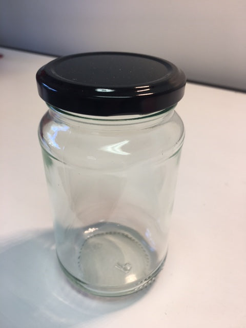 375ml/500g glass round jar. Food grade quality. The jar is perfect for honey, jams, chutneys or candles.