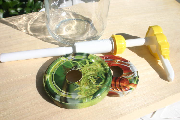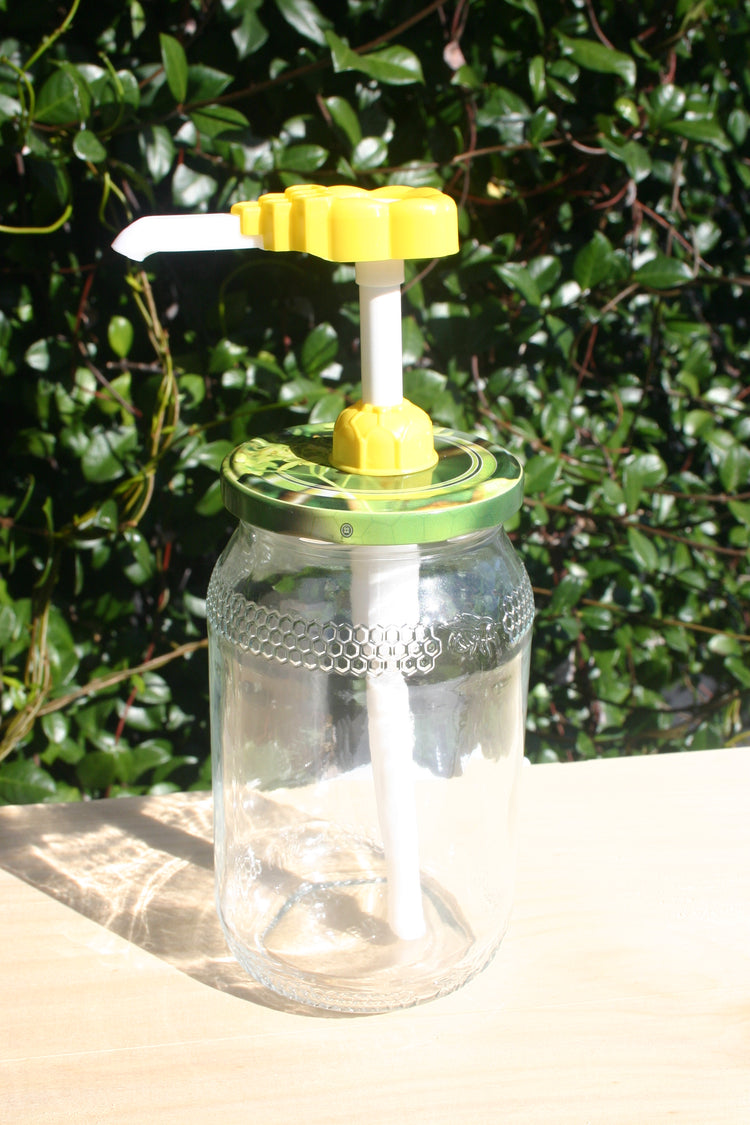 Honey Pumps with Two Lids. Fabulous alternative to the honey stirrer method of dishing out the goods.
